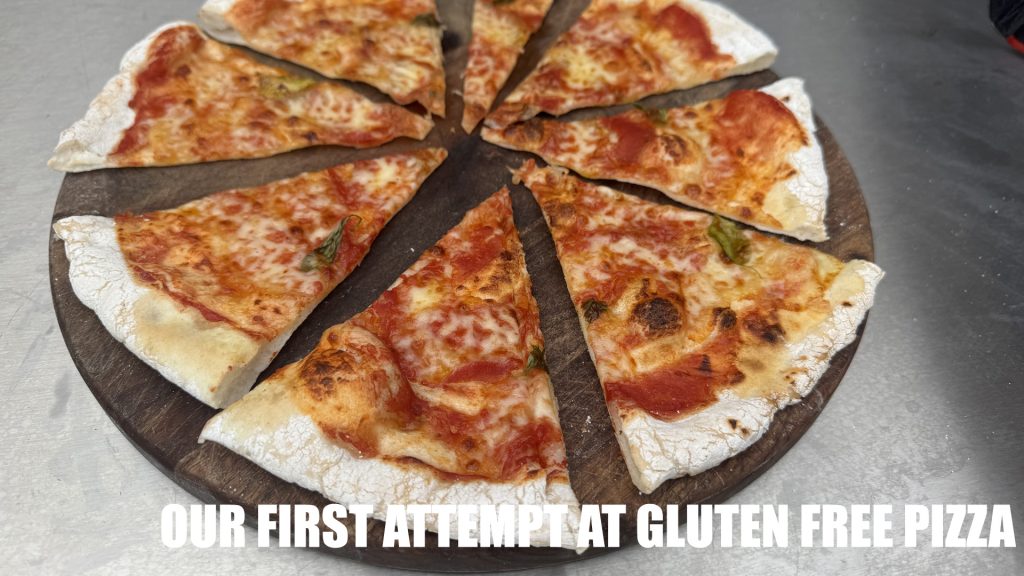 A timeless classic, reimagined for modern palates. This gluten-free Margherita features a gluten free base made from a custom blend of gluten free flour and olive oilβ€”light, crisp, and fire-kissed in a blazing woodfired oven. If you want to know how to make the dough, then here is our recipe.