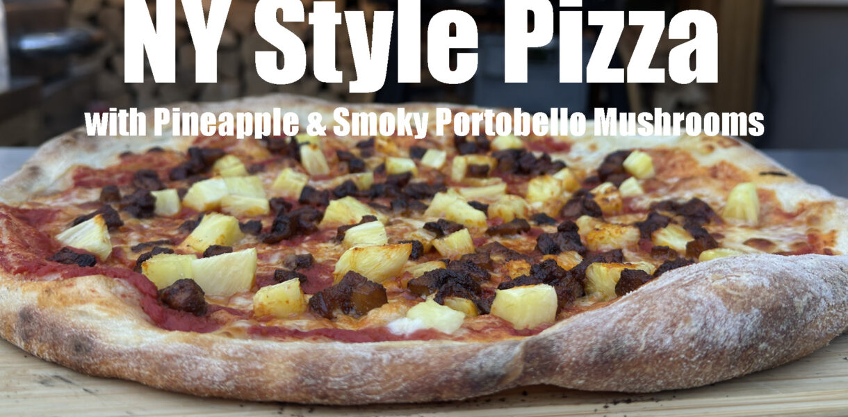 Today I’m making a New York‑style pizza topped with creamy fior di latte, sweet pineapple, and rich portabello mushrooms coated in smoked paprika, garlic powder, smoked salt and melted butter.